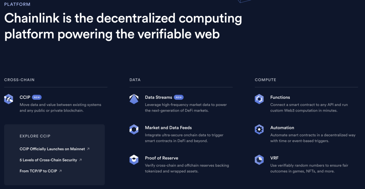 Uruchomiony w czerwcu 2017 roku przez firmę SmartContract, Chainlink został stworzony, aby stworzyć bezpieczną, agnostyczną wobec blockchaina warstwę. Warstwę, która ułatwia wymianę danych między blockchainami a światem zewnętrznym. Współzałożony przez Sergeya Nazarova i Steve’a Ellisa, ma na celu rozwiązanie problemu oracle, który polega na dostarczeniu smart kontraktom dokładnych i odpornych na manipulacje danych bez poświęcania decentralizacji lub bezpieczeństwa.